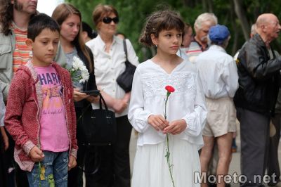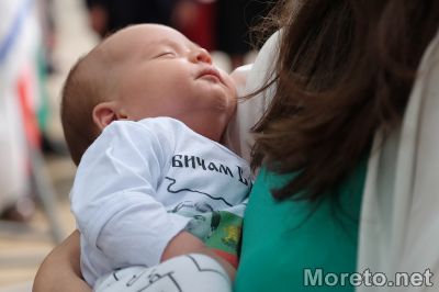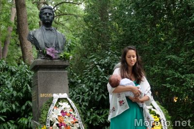 Млада майка с пеленаче на ръце поднесе цветя пред паметника на Апостола на свободата по време на общоградското честване тази сутрин в Морската градина, предаде репортер на Moreto.net. Малкото дете беше облечено с дрешка с лика на Васил Левски и надпис "Обичам България".