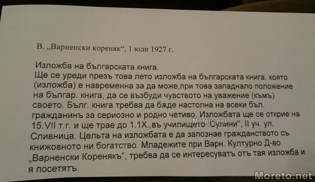 Тази година се навършват 90 години от първото книжно изложение в България. Събитието се е състояло през лятото на 1927 година във Варна, научи Moreto.net.