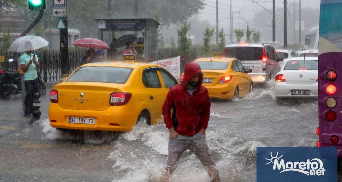 Пороен дъжд се изсипа над Истанбул във вечерните часове. Валежът, придружен с градушка и силна буря, продължи близо 20 минути и нанесе огромни щети.