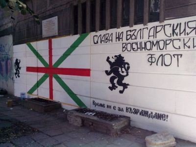 Част от фасадата на жилищен блок на бул. „Осми приморски полк“ е напълно преобразена, след като членове на движение „Възраждане“ премахнаха драсканиците от нея и изобразиха знамето на българския боен флот, научи Moreto.net.
