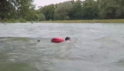 Реката може да бъде много опасна и поради тази причина преди всяко плуване Бенджамин проверява температурата на водата и силата на течението. Раничката пък му служи и като спасителна жилетка, тъй като има специални коркови подплънки.