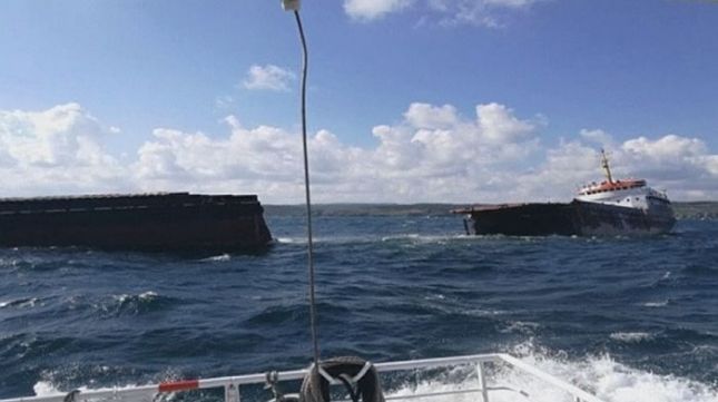 Корабът „Леонардо”, дълъг 114 метра, който плава под монголски флаг, започнал да се огъва и накрая се разцепил на две, докато стоял на котва в Килиос край Истанбул.