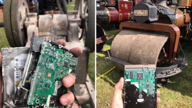 Стар валяк с тегло 6,5 т премаза харддиска с неиздадените творби на Тери Пратчет, каквато беше волята на писателя, съобщи Би Би Си.