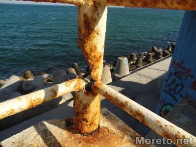 Разбита на места е и настилката на мястото, което години наред се използва за сватбени и тържествени фотосесии. Проядени от ръждата са и стълбите, по които разхождащите се могат да стигнат към Вълнолома.