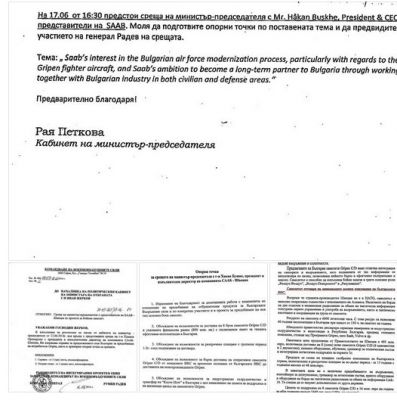 Настоящият президент Румен Радев през юни 2014 г. е подготвил за тогавашния премиер Пламен Орешарски опорни точки, които са били използвани по време на среща с представител на „Сааб” – компанията, която произвежда изтребителите „Грипен”. Именно те бяха посочени като предпочитан вариант за нашите ВВС по време на назначеното от генерала служебно правителство. Това става ясно от документи, които депутатът от ГЕРБ Антон Тодоров показа в студиото на „Тази сутрин”.