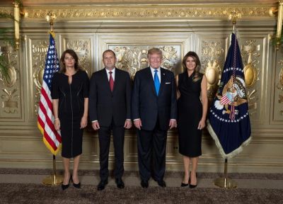 Заедно с двамата държавни ръководители за снимката позираха и първите дами - Десислава Радева и Мелания Тръмп.
