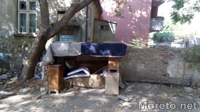 Скитническата бърлога е близо до изоставена сграда, чийто двор от години е препълнен с отпадъци.