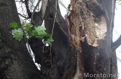 Огромен прогнил клон се стовари след снощната буря насред оживен тротоар под Медицинския университет във Варна, видя репортер на Moreto.net. За късмет сигнал за сериозно пострадали хора не е подаван. Мястото обаче продължава да бъде блокирано от падналата дървесина и днес преди обед.