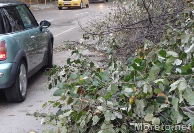 И докато за инцидента до университета виновна се оказва природата, на бул. „Чаталджа“, близо до кръстовището с ул. „Генерал Колев“, множество нарязани клони препречват едното пътно платно. Секачи, наети от Общината за санитарна резитба са премахнали огромно количество изсъхнала дървесина.