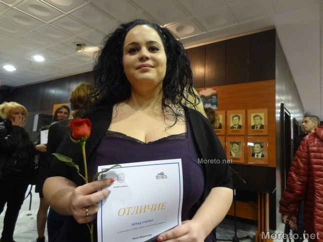 Сред наградените днес бе и Нели Маринова от Детска градина "Иглика" във „Виница". Тя е учител от 6 години. В професията попада по чиста случайност. Като студентка имала намерение да се измести в друга специалност, но като започнала практиката разбрала, че това е нейно призвание. „Мисля, че точно младите хора имат място в системата", категорична е тя. И според Нели, децата обичат младите хора, харесват новите неща, които те им предлагат и затова ги възнаграждават с цялата си любов. Казва, че единственото, от което може да се оплаче е, че в ежедневието има и много писарска работа, която отнема от времето за игри и занимания с малчуганите.
