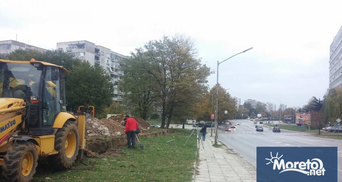 Днес работници копаеха в тревните площи край булеварда. Ще се мести ВиК и електрическа инфраструктура.