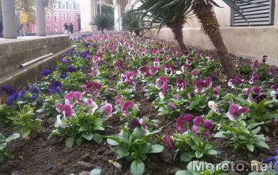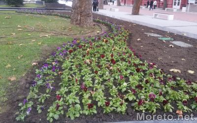 „Килими“ от есенни теменужки красят знакови обществени места във Варна. Градинарки от фирмите по озеленяване масово оформят шарени лехи в паркове и алеи, видя репортер на Moreto.net.