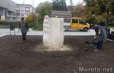 Палитра от есенни багри превзе още миналата седмица Алеята на възрожденците в Морската градина. Днес преди обед работници старателно почистваха сухите листа от тревните площи пред Общината. На място на популярните през лятото жълти и оранжеви тагетиси, и розови, цикламени и червени импатиенси и винки, вече се оформят лехи с теменужки в жълто, лилаво и синьо.