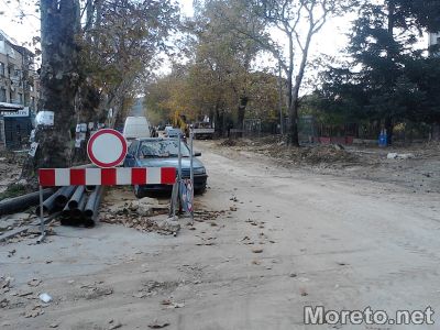 Движението на автомобили в ремонтиращите се участъци е невъзможно и затова са поставени указателни табели.