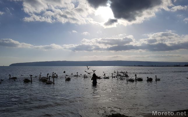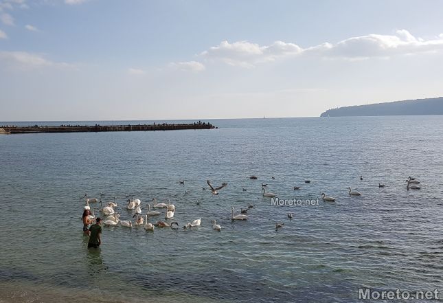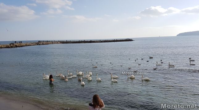Край Първа буна пък варненка реши да поплува заедно с лебедите. Жената бързо се превърна в атракция за минувачите.