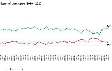 През 2017 г. доверието в обобщения образ на Европейския съюз в България възстанови своите позиции, след като в предходната 2016 г. беше достигнало по-ниски стойности.