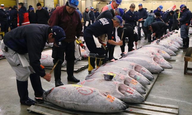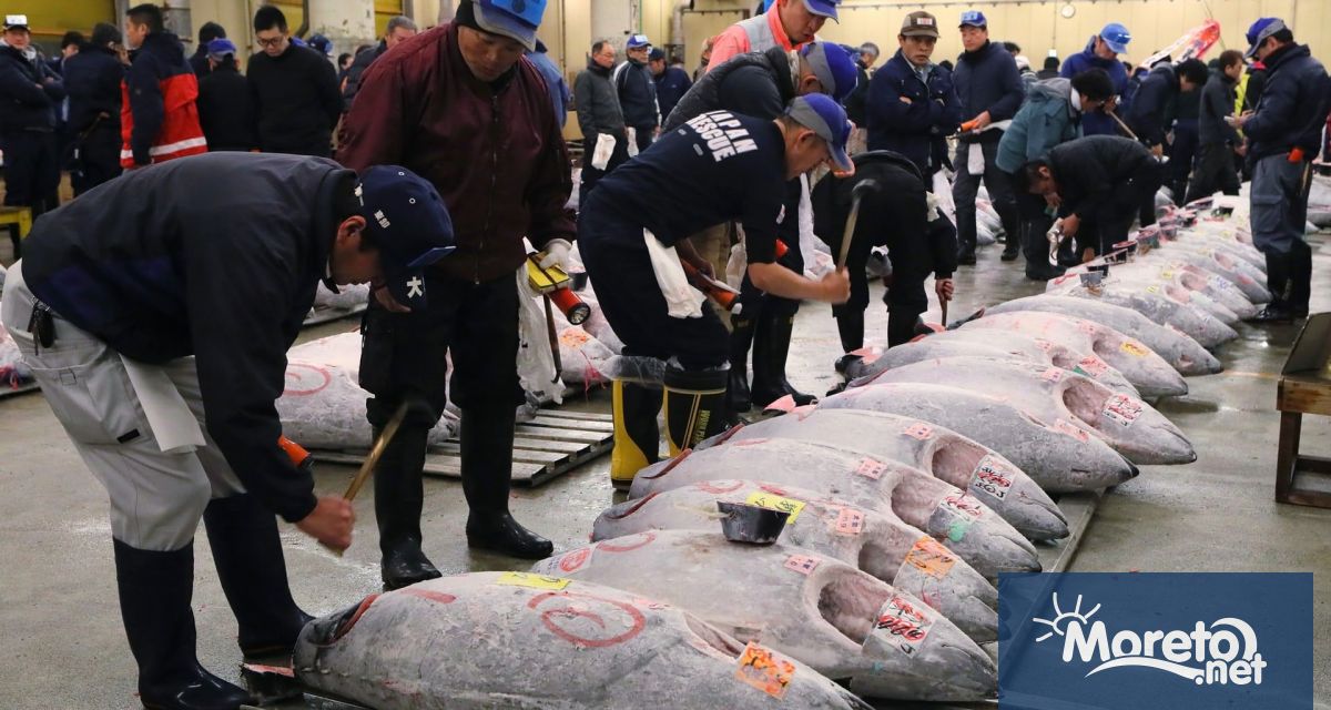 Риба тон с тегло 405 килограма беше звездният лот на търга в известния токийски пазар за морски продукти Цукиджи, който намери купувач за 323 хиляди долара.