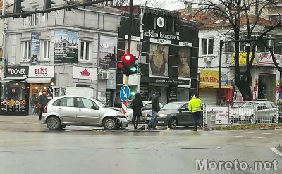 Лек автомобил Ситроен катастрофира в светофарната уредба на кръстовището до Икономически университет Варна, видя репортер на Moreto.net