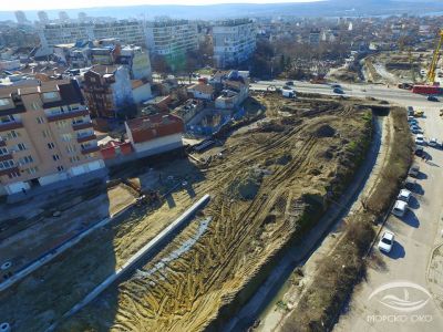 Снимки, направени с дрон на "Морско око" дават ясна представа за случващото се с най-мащабния инфраструктурен проект на Варна през последните години.