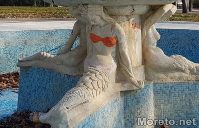 Самозваните художници са успели да изрисуват с червен спрей кръстчета и сутиен върху гърдите на две от митичните морски нимфи. Преди време една от сирените се сдоби и с червено сърчице.