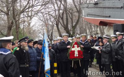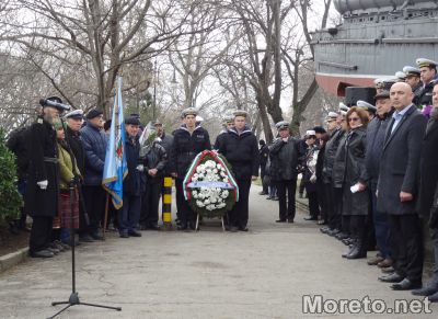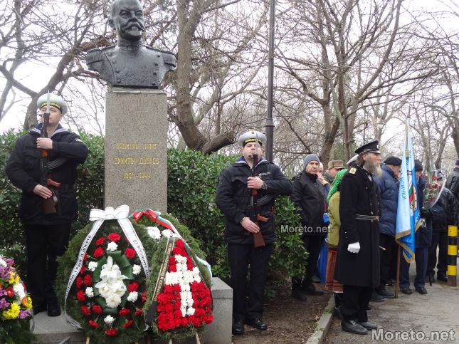 С военен ритуал и поднасяне на венци бе отбелязана 150-годишнината от рождението на флотоводеца кап. I ранг Димитър Добрев, постигнал победата на турския крайцер „Хамидие“, предаде репортер на Moreto.net.