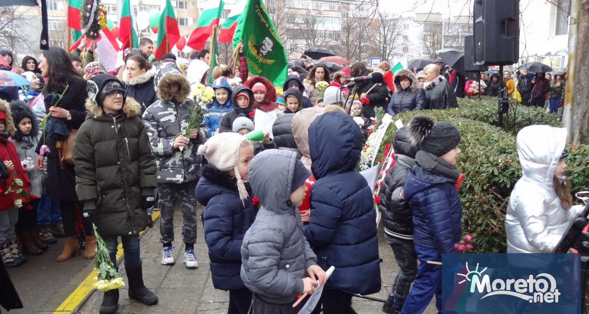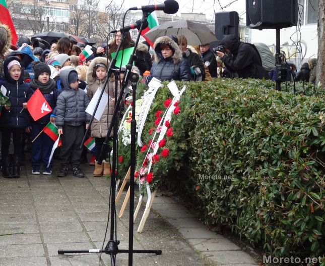 Цветя поднесоха деца от ДГ „Чайка“. „Слънчева дъга“ и ОУ „Захари Стоянов“, предаде репортер на Moreto.net.
