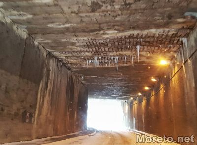 Освен, че е непочистен и вътре може да се завърти автомобил, който или ще блокира движението или ще се блъсне в стените, от тавана на подлеза висят и огромни ледени висулки.