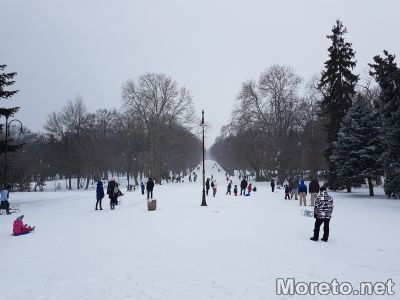 Заснежена алея в Морската градина във Варна създава веселие на десетки деца, видя репортер на Moreto.net.