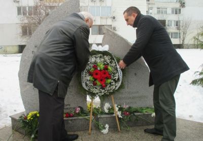 След минутата на почит пред паметния знак бяха поднесени венци и цветя.