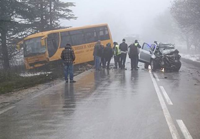 Според първоначалната информация 43-годишният водач на лекия автомобил от Добрич, по време на движението си, навлиза в лентата за насрещно движение и се блъска челно в автобуса, който към момента на катастрофата не е превозвал деца и е бил празен.