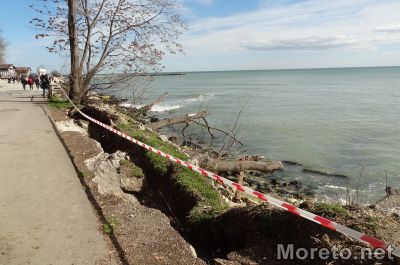 Припомняме, че след порой през май 2016 година, няколко огромни дървета до Рибарския плаж буквално се топнаха в морето, а заедно с тях падна и предпазният парапет.