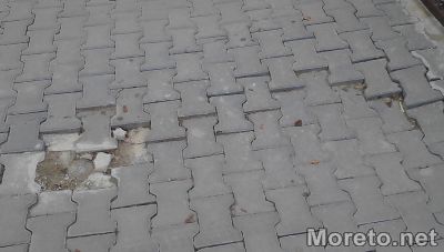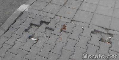 В аварийно състояние са и новоремонтираните тротоари. Плочките на много места вече са започнали да пропадат, има и отместени бордюри. Постепенно по тротоарите се появяват неравности, които променят формата на подложката и разместват плочките.