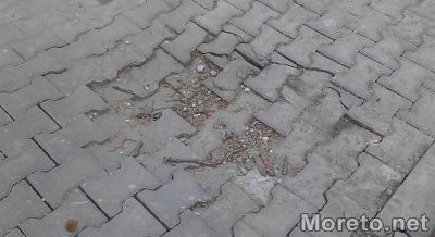 Ремонтираната главна улица на "Виница" започна да се руши, преди още да бъде напълно завършена реконструкцията, видя репортер на Moreto.net.