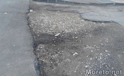 Заради все още неположен най-горен износващ пласт на асфалта, по платното се отвориха големи дупки. Ниските температури и валежите през последните дни започваха да раздробяват и разрушават асфалта, който беше положен преди около два месеца.