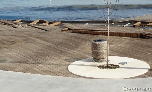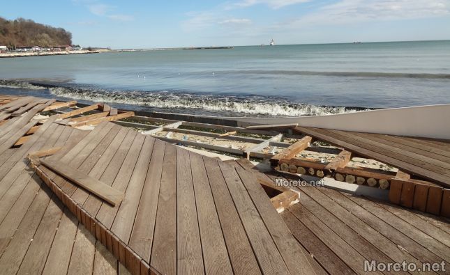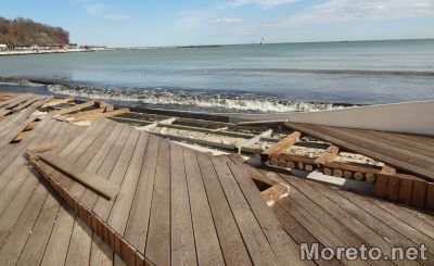 Кътът за съзерцание на Крайбрежната алея, който бе изграден миналото лято, е понесъл щети заради бурното море покрай последните снежни дни. Вълните буквално са изкъртили дъски от дървената площадка, видя репортер на Moreto.net.