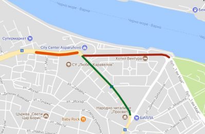 Едното платно за движение по бул. „Народни будители“, в посока център-Аспарухово, от ул. „Чонгора“ до кръстовището с ул. „Мара Тасева“, ще остане затворено за преминаване на автомобили. Движението от и към центъра на Аспарухово ще се осъществява двупосочно в съседното платно. Улица. „Мара Тасева“ ще бъде затворена с пренасочване на движението по бул. „Народни будители“, който ще бъде отворен след новостроящото се кръгово кръстовище.
