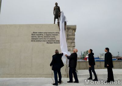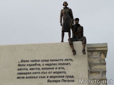 Под самата скулптура са изписани стихове на Валери Петров за морето.