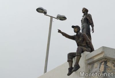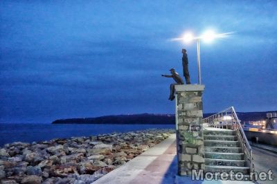 300-килограмовото бронзово произведение, което представлява композиция от фигурите на момче и момиче, гледащи към морето, се намира на стената на вълнолома срещу входа на платения паркинг до Морска гара.