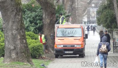 Дни преди очакваната визита на турския президент Реджеп Таип Ердоган във Варна, работници разчистват площите около представителния булевард "Княз Борис I", видя репортер на Moreto.net.