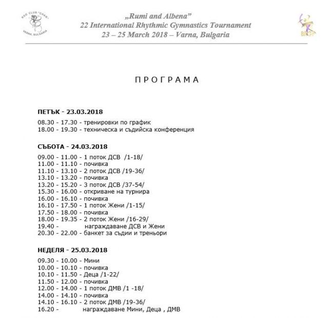 16 чуждестранни и 13 български клуба по художествена гимнастика с общо 164 гимнастички ще се включат в 22-рото издание на турнира по художествена гимнастика „Руми и Албена“, научи Moreto.net. Състезанието ще се проведе във възрастите деца 2010 и по-малки, деца 2008 – 2009, девойки младша и старша възраст, жени. Събитието е част от проявите посветени на 70-годишнината от създаването на художествената гимнастика във Варна и ще се състои от 24 до 25 март в ДКС-Варна.