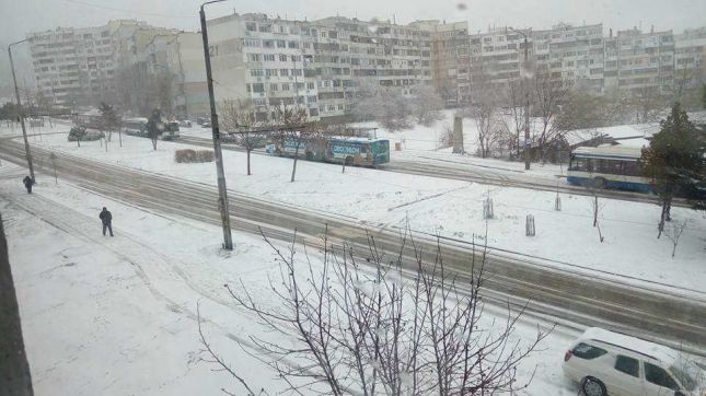 Тролей закъса в снега преди обръщача на "Владиславово" във Варна