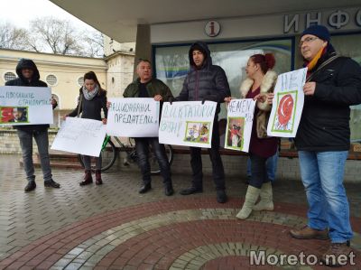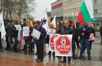 Стотина души се събраха на протест, организиран от партия „Възраждане“, срещу посещението на турския президент Реджеп Ердоган във Варна, предаде репортер на Moreto.net.