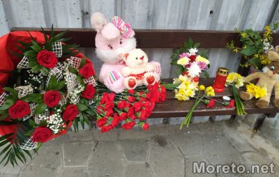В памет на жертвите на входа на институцията има оставени още плюшени играчки и свещи.