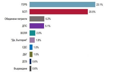 "Алфа Рисърч: ГЕРБ - 23,1%, БСП - 20,5%