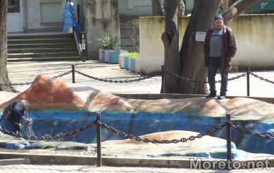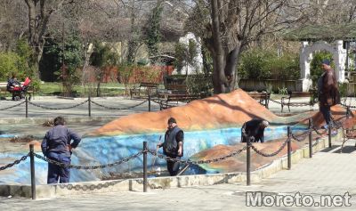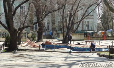 Работници почистват макета на Черно море пред сградата на Аквариума във Варна, видя репортер на Moreto.net. След зимните месеци, умаленият модел на морското дъно се оказа пълен с боклуци, прогнили листа и пясък.