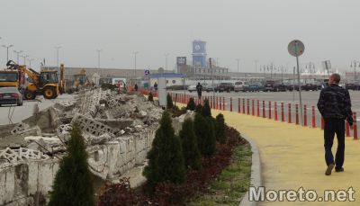 Работата по събаряне на каменния зид е във връзка предстоящата подмяна на съоръжението. Тази дейност представлява само част от всички ангажименти, които са възложени от Държавно предприятие „Пристанищна инфраструктура“ на „Хидрострой“ след проведена обществена поръчка за 1 млн. лева през миналата година. Фирмата ще трябва да се погрижи не само за вдигането на нова ограда, а и за преасфалтирането на пътя край съоръжението, обновяване на тротоарите и шахтите.