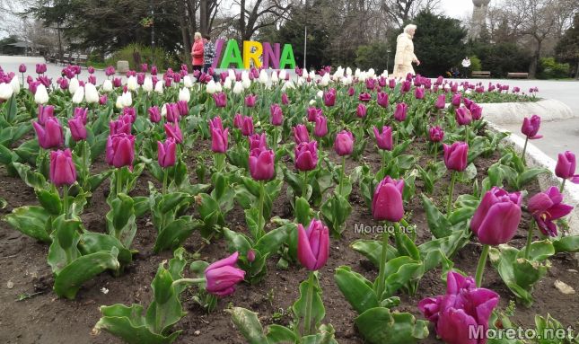 Над 40 000 лалета в Морската градина и тази пролет ще радват варненци и гостите на града. Пищни пъстроцветни килими от цветя вече се извиват по цялата Алея на възрожденците към Пантеона, над амфитеатралната площадка и около Морското казино. Богат асортимент от теменужки също допълва шарените багри, които примамват все повече минувачите за снимки, видя репортер на Moreto.net.