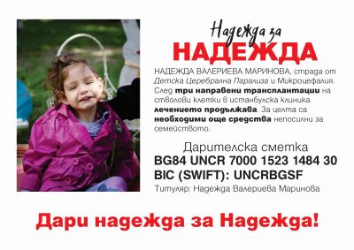 3-годишната Надежда от Варна е с диагноза детска церебрална парализа и микроцефалия.