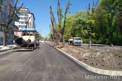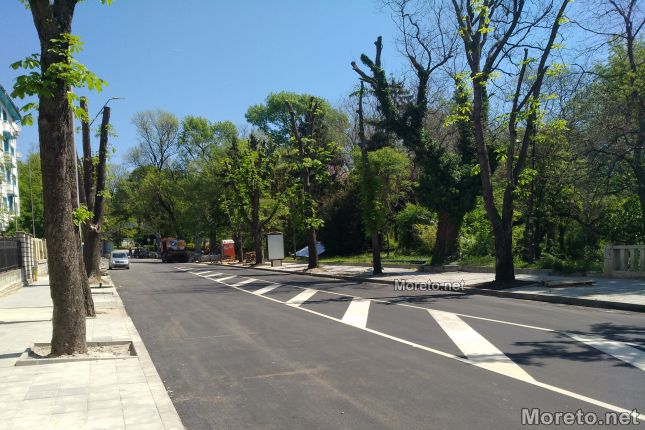 Ремонтните дейности по бул. „Приморски“ не стихват, видя репортер на Moreto.net. Асфалтовите слоеве на двете платна вече са положени, но продължава работата по тротоарите и градинките. Все още на място активно участва тежкотоварна техника. Движението за преминаващи автомобили е ограничено от кръстовището на Икономическия университет до пресечката след Летния театър.