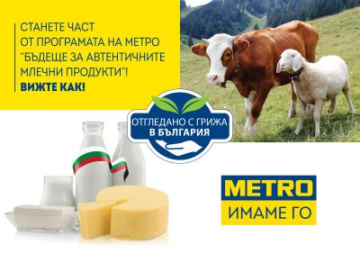 До 20 май МЕТРО очаква заявки от български мандри и млекопреработватели, за да организира с тях съвместното им производство и реализация на местния пазар на прясно и кисело мляко, сирене, и кашкавал. Разработената програма „Бъдеще за автентичните млечни продукти“ ще цели да популяризира българските млечни храни, произведени по традиционен начин. Потенциалните партньори ще трябва да представят набор от докумeнти и да отговарят на стандартите за качество, очаквани от компанията.